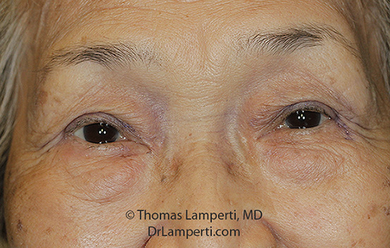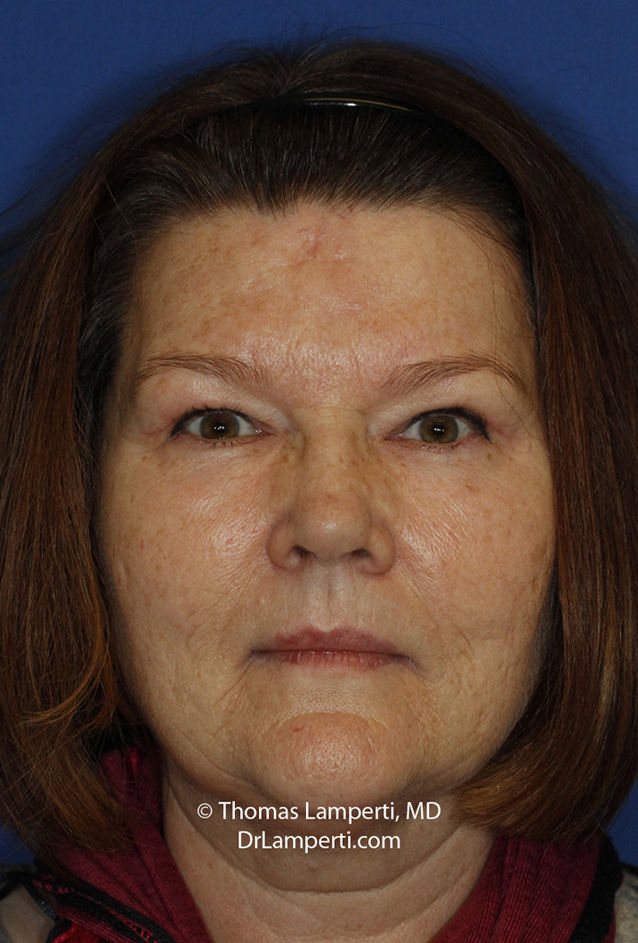 This Seattle blepharoplasty patient had a combined upper eyelid blepharoplasty and ptosis repair along with fat grafting to the lower eyelid and cheek region. Additionally, she had a facelift to improve her neck skin laxity.