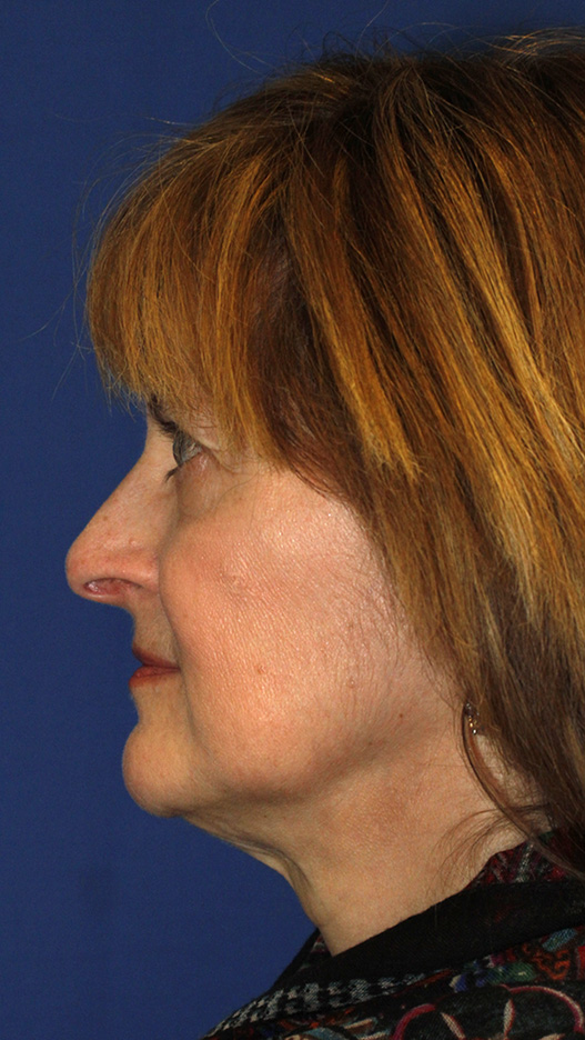 This Rhinoplasty patient sought the advice of Thomas Lamperti, MD to see what her options were regarding making her nose smaller and less long. During the initial office consultation Dr. Lamperti noted the patient's prominent, hanging columella and down-turned, over-projected tip which gave her nose an overly long appearance. Dr. Lamperti performed an open septorhinoplasty in which he was able to deproject the patient's tip along with tucking up her hanging columella. During this process he lifted the tip to create a bit more up-angulation. He also reset the patient's bridge profile line to match her new tip position. In the 1 year after photos you can see how the patient has a smaller nose that better fits her facial features. At the same time the patient's new nose maintains a natural appearance that looks like it's been there for years.